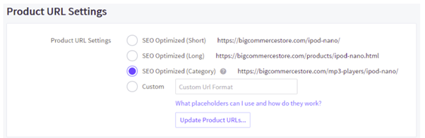 As mentioned previously, BigCommerce creates clean URLs for your site by default. However, you can set custom URLs and it is advisable to do so.