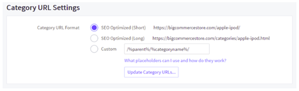 - SEO Optimized (Short)— uses the category name in the URL, using the format com/category-name