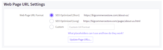 - SEO Optimized (Long)— adds the word “pages” before the web page’s name, in the format com/pages/page-name