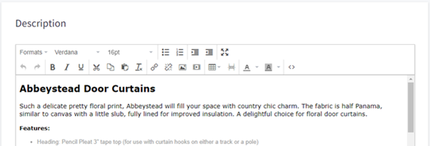 Don’t forget, unique content, not that copied directly from the manufacturer, make this comprehensive and accurate, adding long tail and secondary keywords into the description to create variety.
