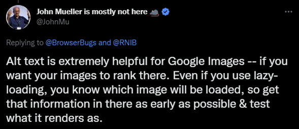 In 2018, Google’s own John Mueller had this to say about alt tags: